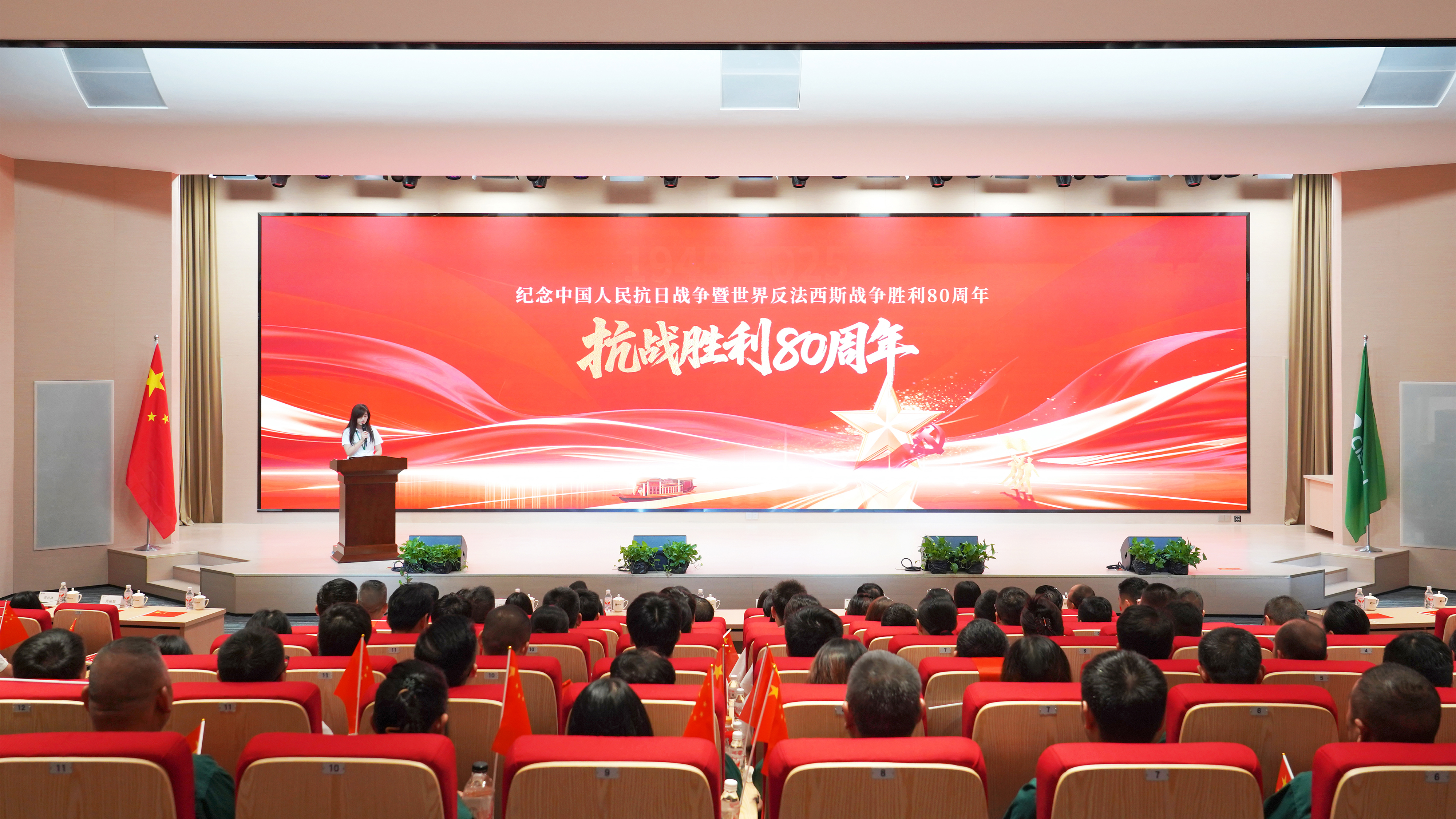 上午9時,報告廳內(nèi)燈光漸暗,全體員工整齊就座。隨著紀念大會正式開始,大屏幕上呈現(xiàn)出天安門廣場的莊嚴畫面,人民英雄紀念碑在朝陽下莊嚴挺立,十萬軍民肅立無聲。當國歌奏響時,全體鑫政人起立高唱國歌,肅穆之情彌漫整個會場。在兩個多小時的直播過程中,會場始終保持莊重肅穆的氛圍,不時響起的自發(fā)掌聲,傳遞著鑫政人心中的感動與自豪。